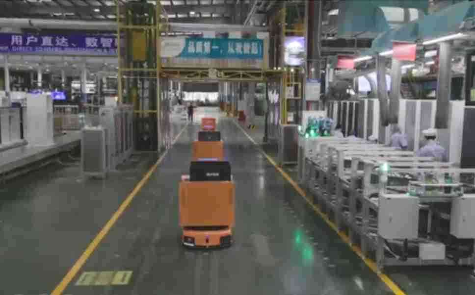 为车载冰箱物流配送打造的智能解决方案,,包含产中物流通过潜伏举升AMR搬运至线边,,产后成品物流智能仓储,,,流程包含产中物流智能齐套入库,,线边安灯叫料AMR智能配送至线边,,成品入库、、、出库,,,通过无人堆高车机器人,,,,智能仓储管理替代人工作业管理,,,实现更高存储、、更高效率、、、更具柔性化的解决方案。。。