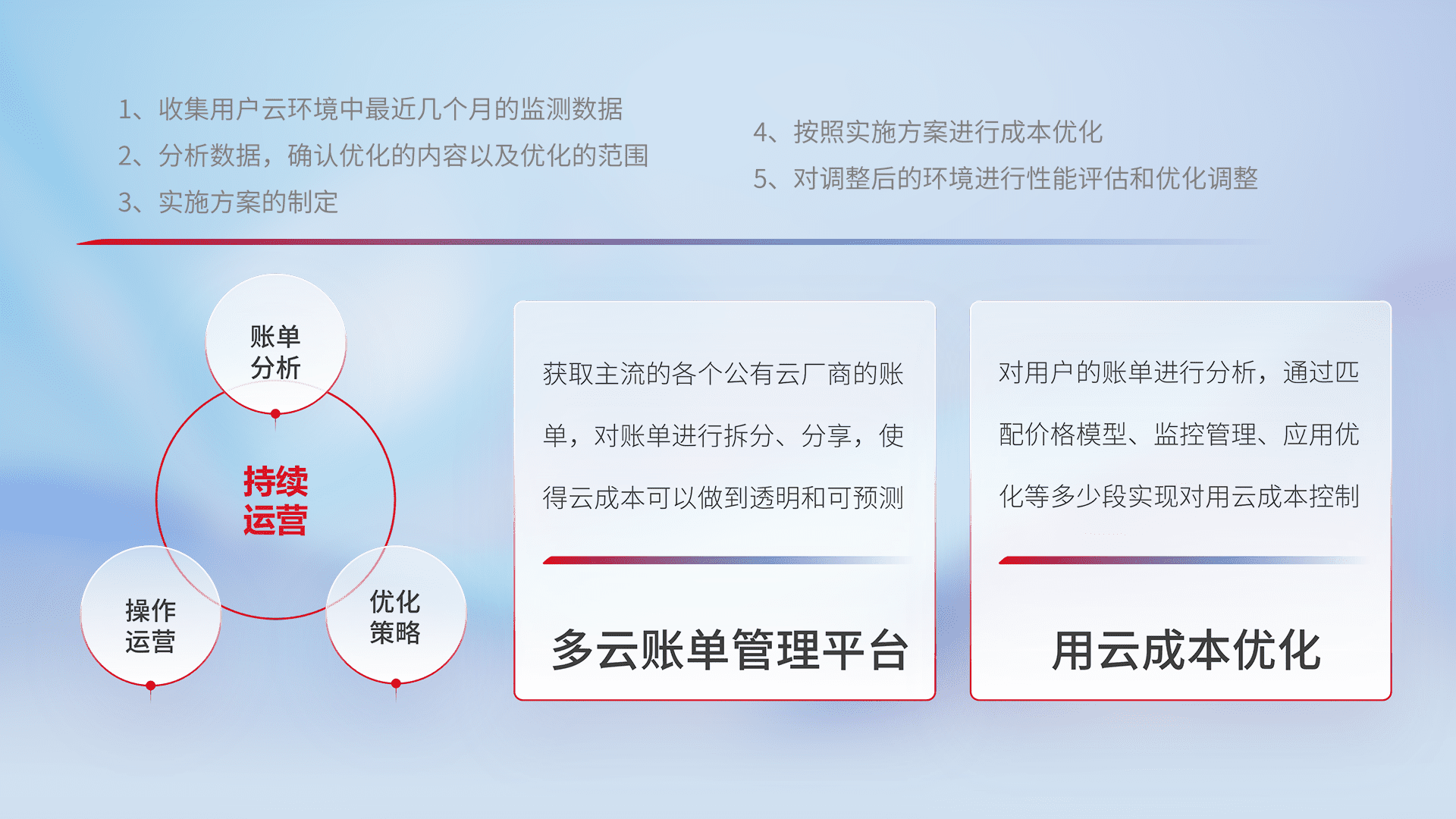 监控业务系统资源开销,,,对资源的消耗精确计量,,,实现费用的透明化管理,,,,不断提升资源使用率,,调整资源购买方式,,,,降低资源费用成本,,用云成本可预测、、、、用云费用可优化,,云资源配额有据可依。。。